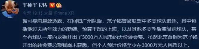 外界调侃的顶薪合同,实际上范子铭下个赛季还是顶薪,以商业价值的角度,范子铭当初与北京签下长约,毫无疑问是各方面保障自身的权益。