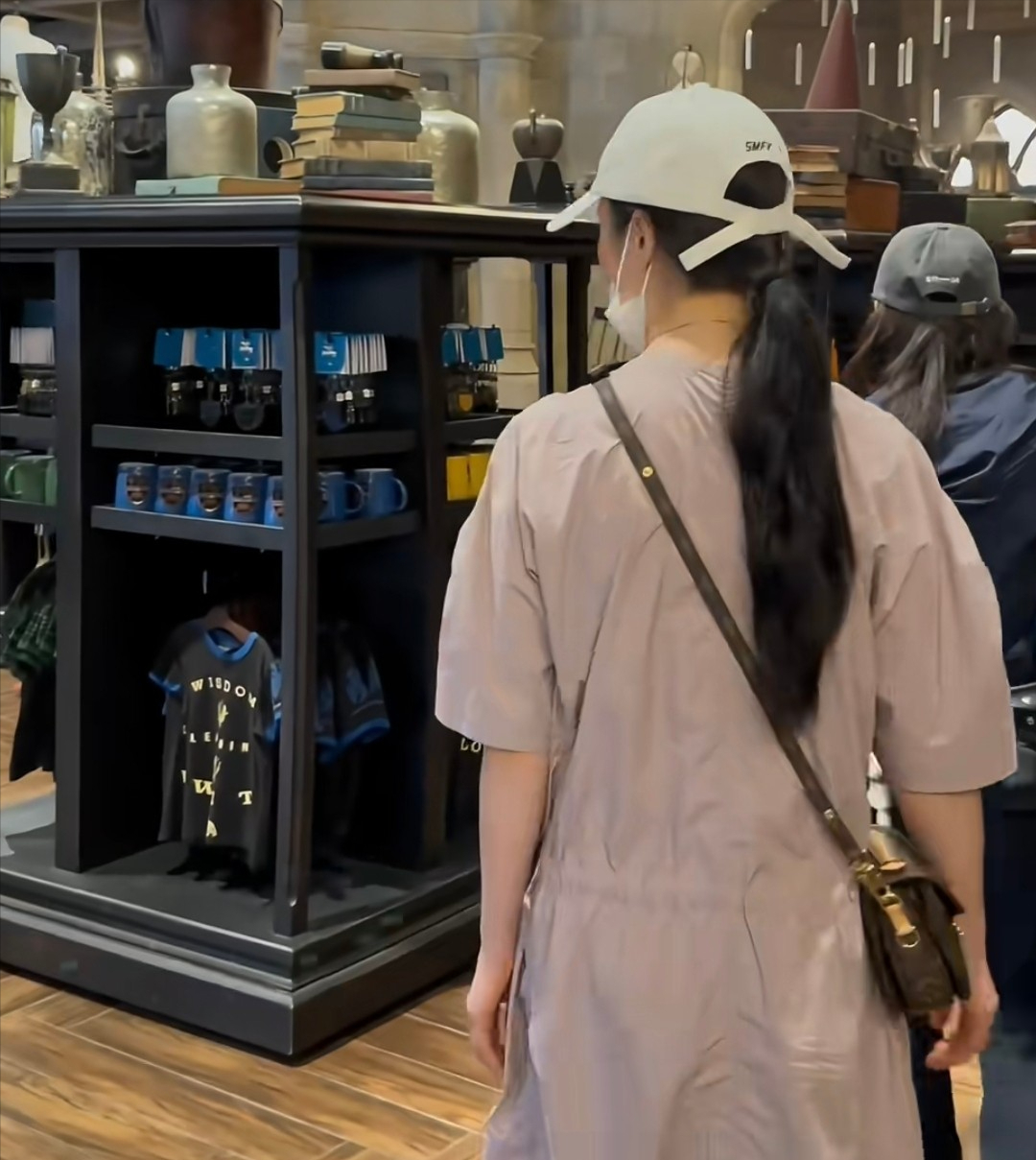 不过从蒋勤勤挑选商品的背影来看,这身形一点也不像是五十岁的女人,长长的马尾辫,白皙水嫩的皮肤,然后还戴着一个减龄的棒球帽,看上去也就三十多岁的样子。